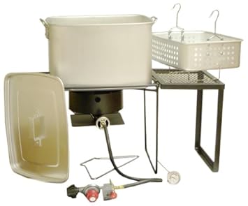 - Fry, Boil and Steam. Fry Up to a 20-pound. Turkey. Rectangular Portable Propane Cooker, 54,000 BTU Cast Burner, Listed LP Hose and Regulator with Type 1 Connection and CSA Certified Battery Operated Timer, 36-Quart Rectangular Aluminum Pot, Basket and Steamer Rack, Two Handed Lift Handle, Deep Fry Thermometer, Work Shelf, Instruction/Recipe Booklet. CSA Design Certified.