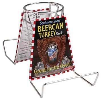 - This clever stainless-steel rack from Bayou Classic lets you cook a turkey via the beer can method with less worry about the can spilling or getting knocked over. A can of beer or soda fits securely in the stand's center (which protrudes into the bird's cavity), while two side flanges provide support for any turkey up to 15 pounds in weight. The turkey can be cooked on this rack in a variety of ways: through indirect heat on a charcoal or gas grill (with at least 12 inches of height clearance), inside an oven, or in a turkey smoker. Reusable and dishwasher-safe, the 11-by-5-by-6-inch TurkCan rack makes an excellent and novel gift for the outdoor chef.